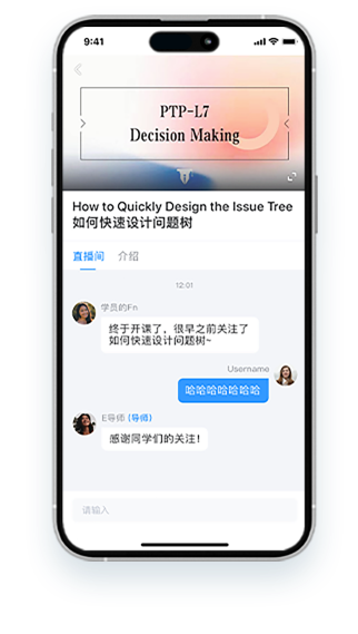 支持学员在手机端跟导师1对1上课,以及自主学习讲座和其他课程